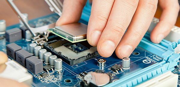 Сотрудник сервисного центра проводит работу: заменяет неработающую комплектующую работоспособной качественной деталью